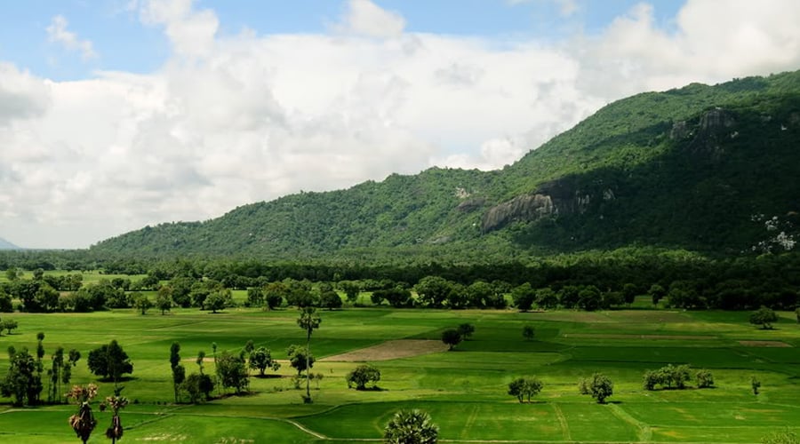 Núi Cấm, hay còn gọi là Thiên Cấm Sơn, tọa lạc tại xã An Hảo huyện Tịnh Biên, với độ cao khoảng 710m so với mực nước biển, có vị thế núi non hùng vĩ và là vùng sơn địa đặc thù hết sức độc đáo. Được thiên nhiên ưu ái ban tặng khí hậu quanh năm mát mẻ nên cả một vùng núi luôn được bao phủ bởi rừng xây xanh ngút tầm mắt xen lẫn vô vàn loài hoa khoe sắc. Bạn hoàn toàn có thể chọn qua đêm để có thể tận hưởng trọn vẹn một đêm với bồng bềnh mây gió, với sự tĩnh lặng như cõi bồng lai trên đỉnh núi.